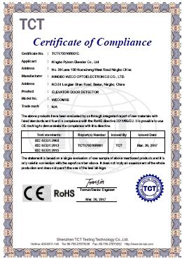 Our company carries out ISO9001 quality management system and has trained a group of professionals engaged in photoelectricity and software development. Our light curtain series take lead among counterparts and have passed CE and ROHS certification of TCT Committee with the certificate number is TCT170316E001.