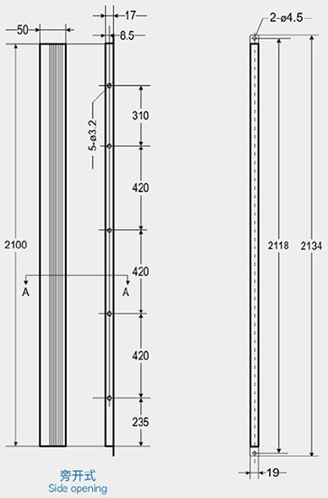 | Dimensions | H2000mm*W55mm*D20mm | |